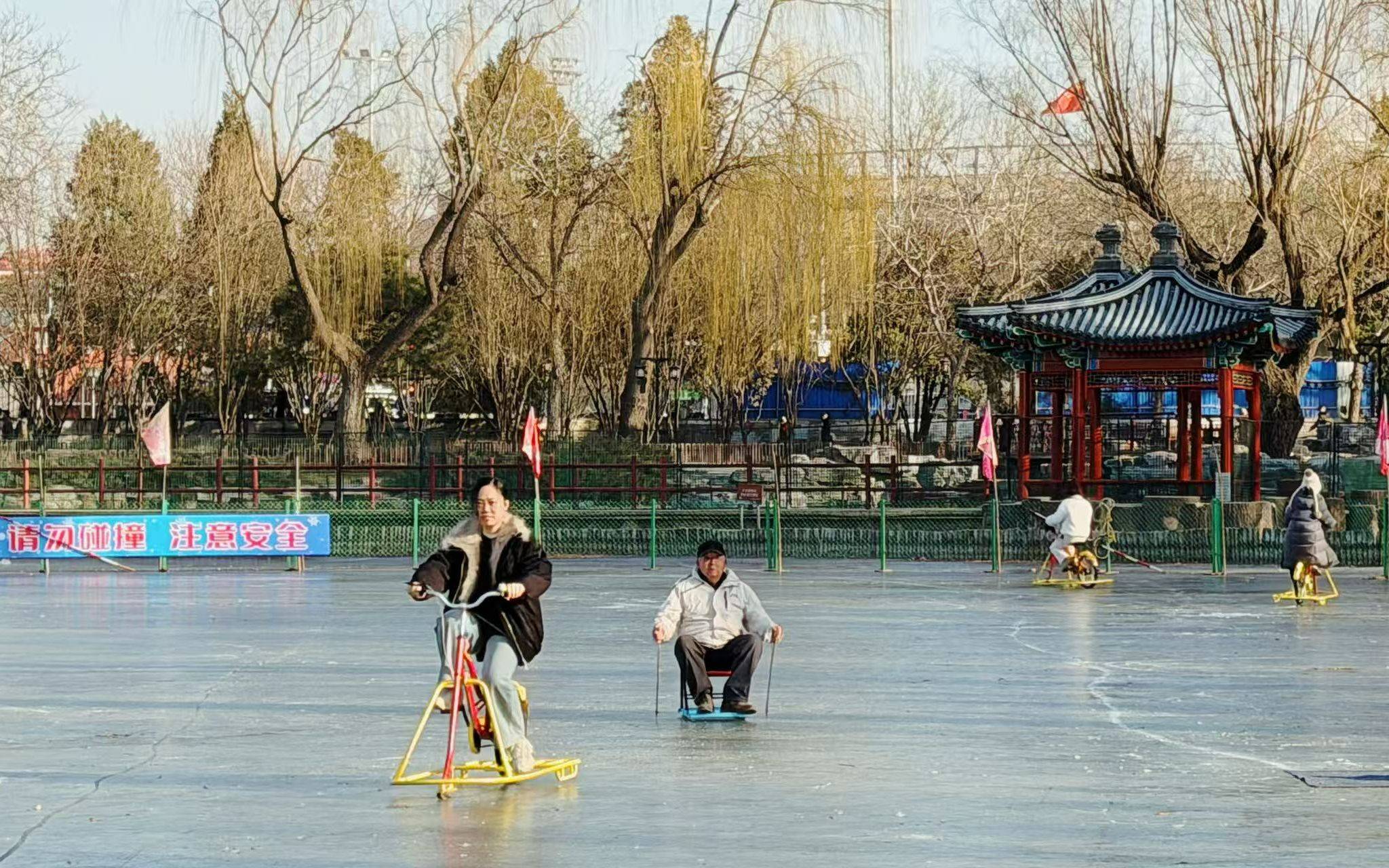 记者1月12日从陶然亭公园管理处获悉,公园东湖东侧冰场已启动试运行,1月13日将正式开放,2000平方米的冰面上配备了冰车、冰上自行车。值得一提的是,今年公园对西湖热门打卡项目冰滑梯进行升级,将原有单滑道改造为双滑道。(新京报)